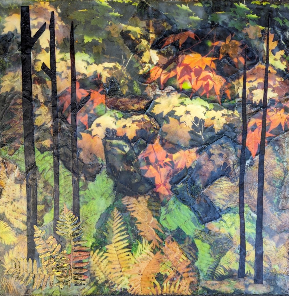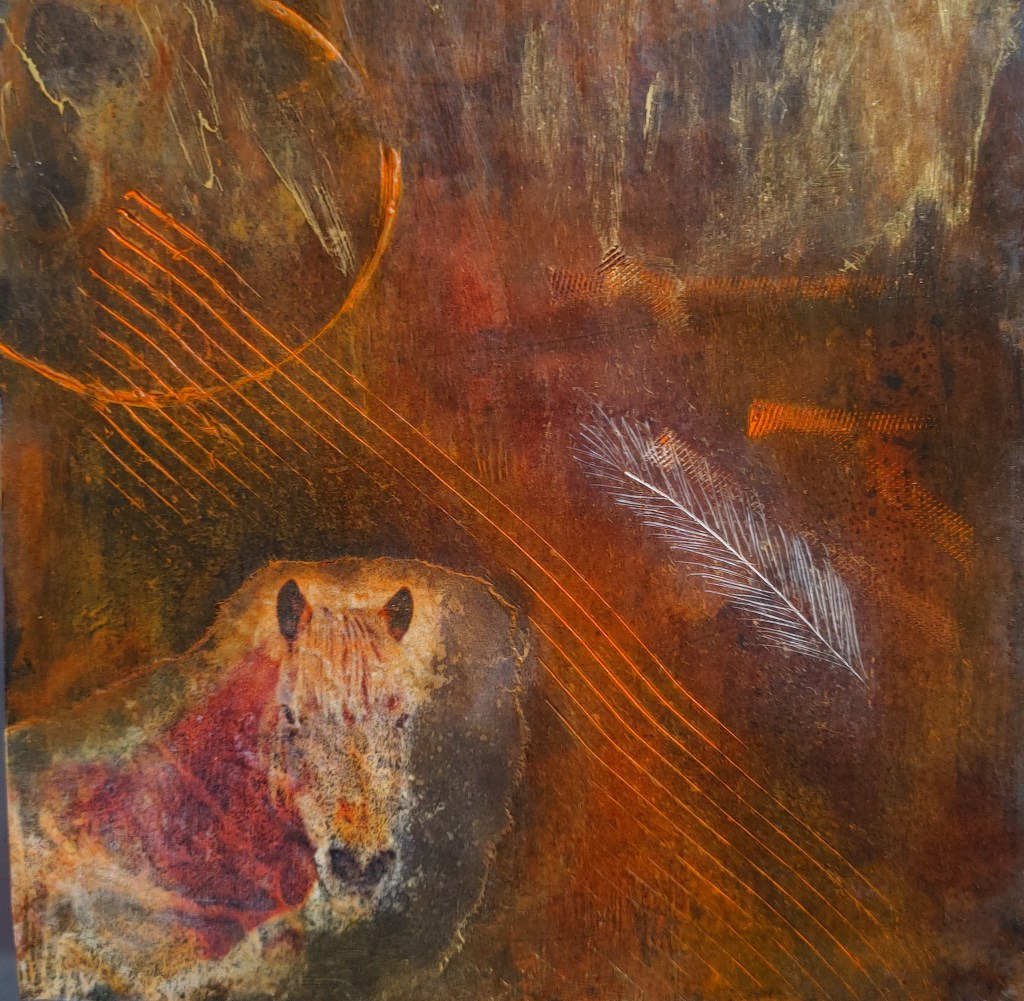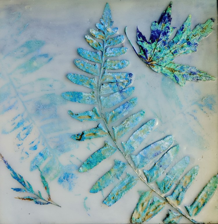 Artist, Kate Colclaser, works mainly on abstract encaustics influenced by the natural world and the amazing, often missed, elements found there.